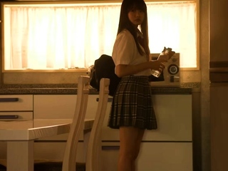 Japanese teen oil fingering her tight pussy